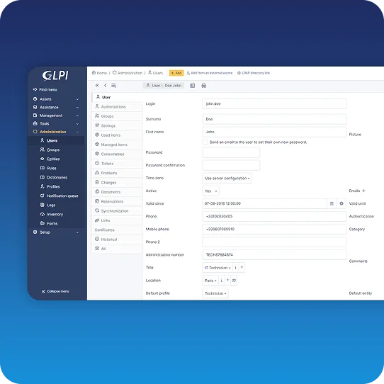 Importez vos utilisateurs depuis votre provider et grâce aux règles d’habilitation, laissez GLPI gérer le reste.